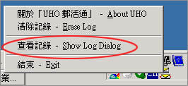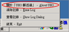 請至螢幕右下角的UHO雙信封圖示 上按一下,彈出Menu後點選「關於《UHO郵活通》」: